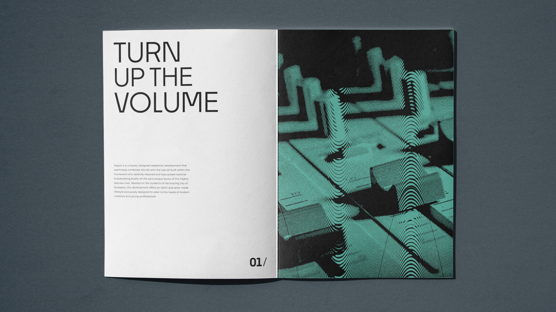A brochure for a new housing property development based in Budapest which was formerly a broadcast house for radio programs. Paying homage to the history of this old broadcasting house, my concept is ‘turn up the volume on your life’