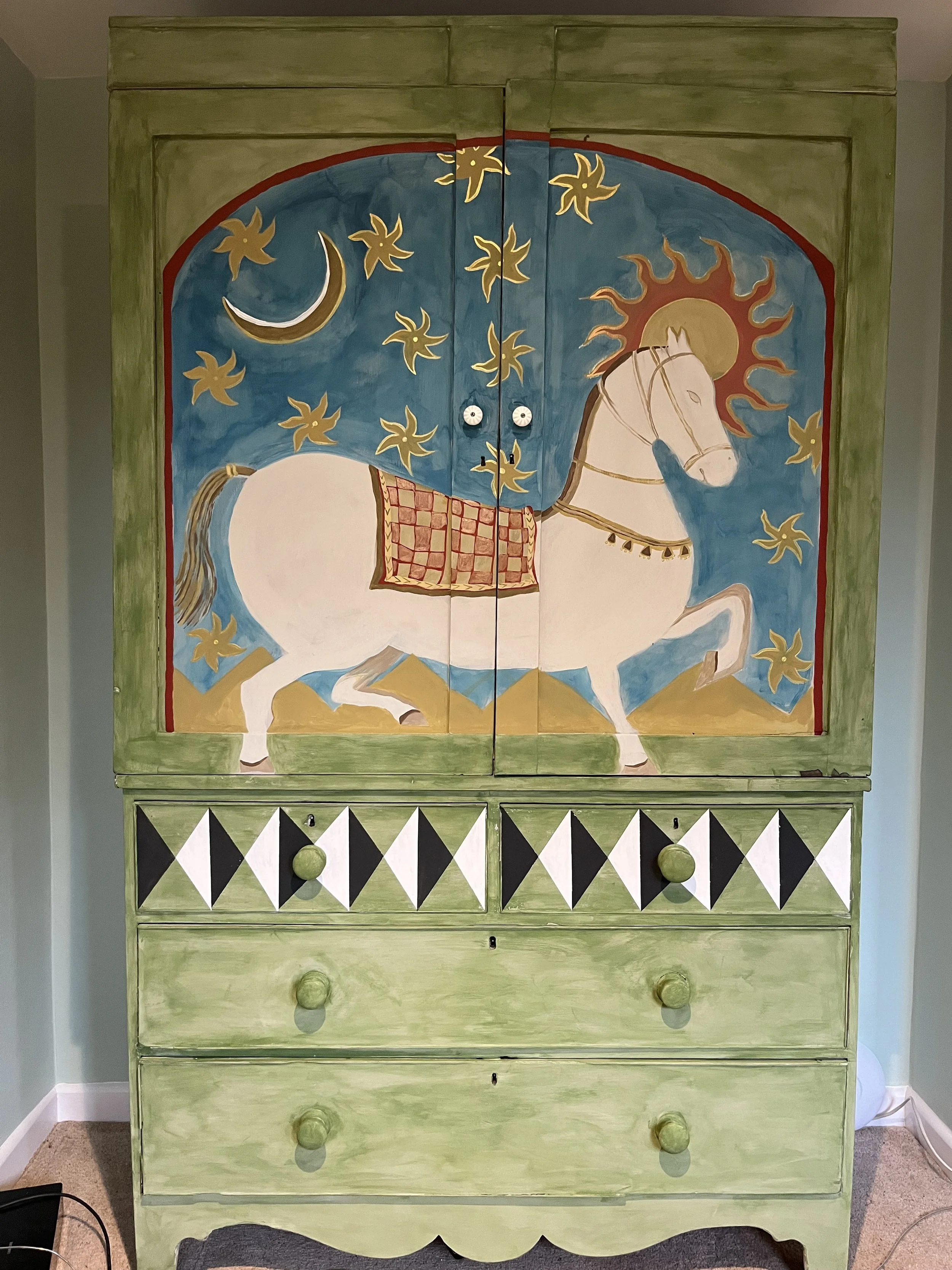 A rustic mexican inspired horse chest that was a key feature in a children’s playroom. This was commissioned by interior designer, Esme Amberg